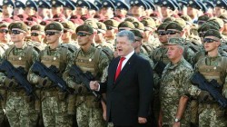 Даже самые агрессивные и экспрессивные политики республики молчат. Да и что тут скажешь? Ну а сам президент Украины изо всех сил пытается выглядеть лидером державы – напускает на себя важность и бодрость, демонстрирует активность… Порошенко – повсюду. В газетах, в интернете. Вот он подписывает закон о военном положении. Позирует в мерлушковой шапке и камуфляже. Советуется с военными. Вспоминает: «Я сам служил в армии. Знаю, что такое казарма на 120 мест в два яруса, знаю, что такое быть дневальным или дежурным по роте, что такое драить взлетку».... Юрий Городненко: Чумная русофобия Запада