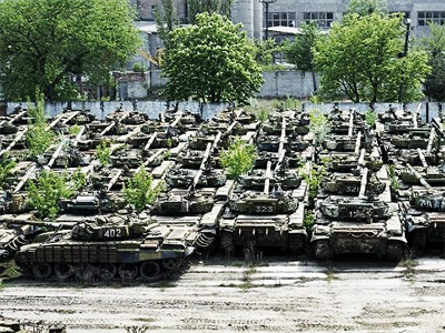 На фото: Украинские танки на консервации. Пока ещё не быстры — «выработан» моторесурс