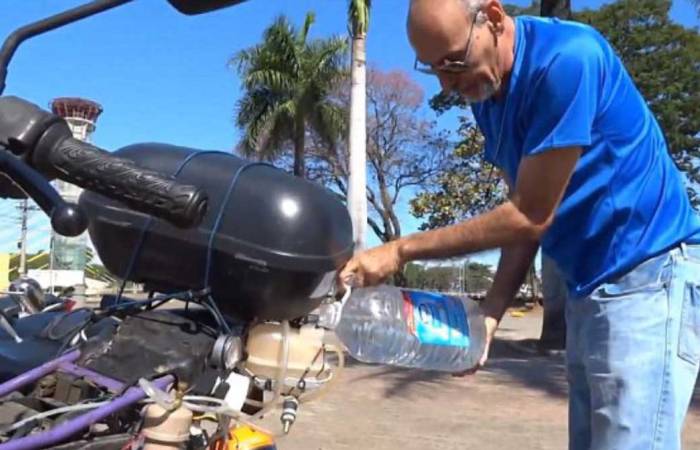 Бразильский госсужащий Рикардо Азеведо в своем родном городе Сан-Паулу стал настоящей знаменитостью. Но известность мужчине принесла вовсе не профессиональная деятельность, а его хобби. Умелец переделал свой мотоцикл, и теперь на нем можно проехать 500 километров, заправив всего 1 литр воды.