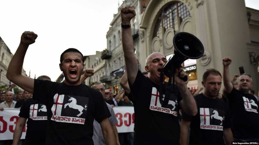 А вот сообщения независимых кавказских массмедиа за тот же день: «Выйти на митинг у «Рустави-2» призывали представители ультраправых организаций, таких как «Грузинский марш».