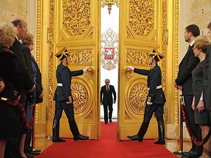 1. 7 мая 2018 года в Большом Кремлёвском дворце состоялась торжественная церемония вступления в должность Президента Российской Федерации, проводимая в день истечения шести лет со дня вступления в должность, избранного на предыдущих выборах, или на 30-й день после оглашения Центральной избирательной комиссией Российской Федерации общих результатов выборов Президента Российской Федерации. Традиционно она проводится в Большом Кремлёвском дворце Московского Кремля. Церемония инаугурации Президента Российской Федерации традиционно (с 2000 года) сопровождается праздничным молебном Патриарха Московского и Всея Руси. В президиуме присутствовали Председатель Конституционного Суда Российской Федерации Валерий Зорькин, Председатель Совета Федерации Федерального Собрания Российской Федерации Валентина Матвиенко, Председатель Государственной Думы Федерального Собрания Российской Федерации Вячеслав Володин.
