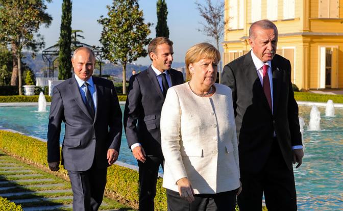 В субботу в Турции состоялся долгожданный саммит лидеров России, Турции, Франции и Германии. Анонсировали его еще летом, предполагалось, что состоится он в начале сентября. Видимо, что-то не заладилось. Но это уже и неважно. Важно то, что здесь не было делегатов от США, у которых, как известно, всегда собственный взгляд на вещи. Зато присутствовал специальный представитель Генсека ООН по Сирии Стаффан де Мистура и представители «астанинского формата».