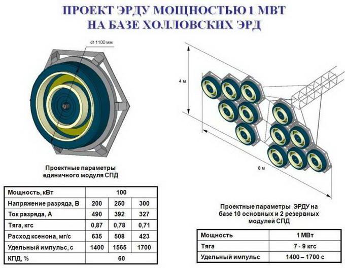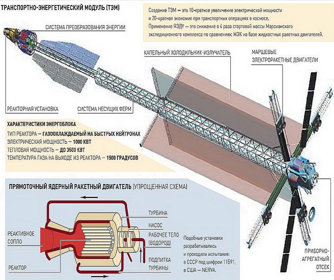 - Для решения первых двух задач в транспортно-энергетическом модуле по обеспечению электроракетной доставки тяжелых космических кораблей и аппаратов на рабочие орбиты и дальнейшее длительное энергоснабжение их аппаратуры.