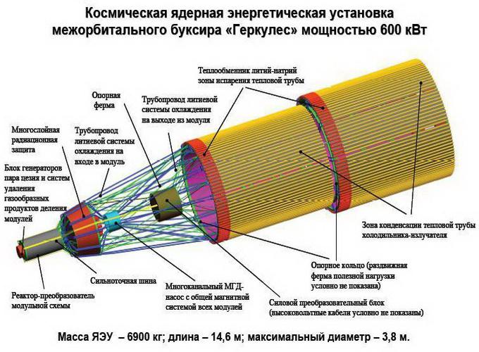 РКК «Энергия» в 70-х приступила к научно-практическим изысканиям, целью которых было создать мощный ядерный космический двигатель для межорбитального буксира (МБ) «Геркулес». Работы позволили сделать задел на многие годы в части ядерной электроракетной двигательной установки (ЯЭРДУ) с термоэмиссионной ЯЭУ мощностью несколько – сотен киловатт и электроракетных двигателей единичной мощностью десятки и сотни киловатт.