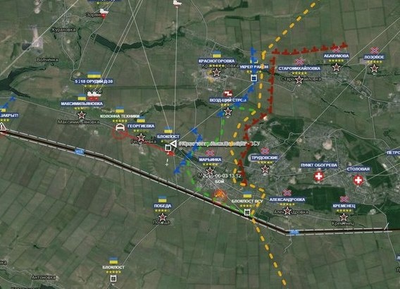 Суть же предельно проста. К наступлению ночи с 3 на 4 июня бои прекратились, ограничившись спорадическими перестрелками. Ни на какое Курахово ополченцы не претендовали, ограничившись окраинами Марьинки, где и закрепились к настоящему времени. Как и предполагалось вчера, штурм Красногоровки, где на территории завода огнеупоров еще с прошлого лета окопалась мощная армейская группировка ВСУ, не предполагался. Налицо типичная разведка боем, в ходе которой достигнут небольшой локальный успех в районе Марьинки.