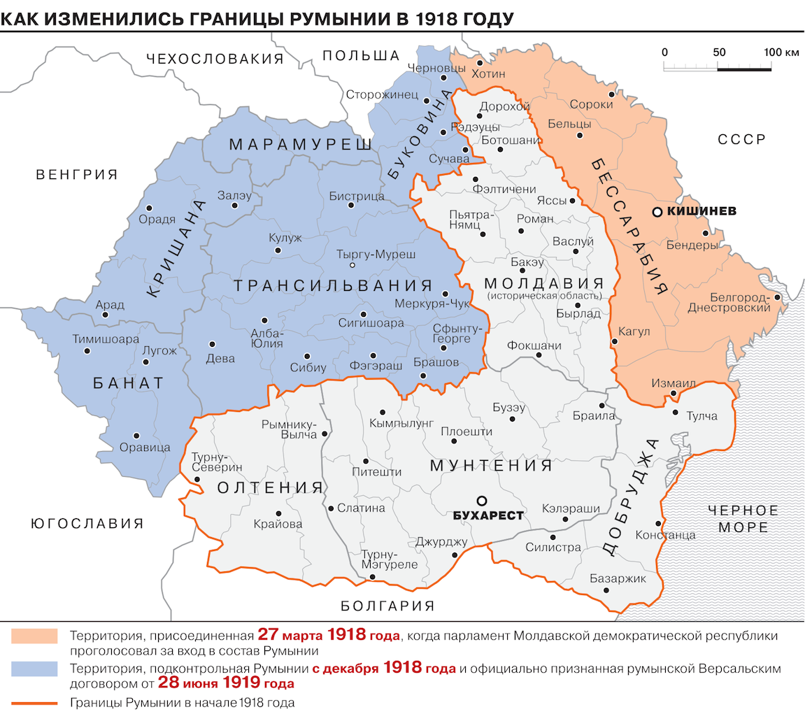 «Румынский проект выиграл. Совет края в марте проголосовал за объединение с Румынией. Представители румынского правительства прибыли в Кишинев и приняли от Совета края акт объединения. После Первой мировой войны объединение было подтверждено одновременно с вхождением в состав Румынии других провинций — Трансильвании и Буковины,— отмечает историк.— Тогда и появилась Великая Румыния. Другими словами, объединение было возможно благодаря совпадению двух элементов: желанию румын, выраженному, как в Бессарабии, через голосование Совета края, так и Бухарестом. И появлению благоприятной международной конъюнктуры, создавшейся из-за распада Российской Империи в результате большевистской революции».