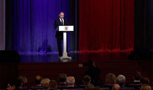 И дальше – воздаем должное оставшимся элементам триады «ФСБ — Служба внешней разведки (СВР) — Федеральная служба охраны (ФСО)». От СВР требуется аналитика. ФСО, согласно оценкам президента, неплохо опустошает Москву, превращая ее в дни торжеств в закрытый город, словно бы очерченный магическим меловым кругом: «Высокой оценки заслуживают действия сотрудников государственной охраны, в том числе при проведении торжественных мероприятий по случаю 70‑летия Великой Победы, а также саммитов ШОС и БРИКС в Уфе, других масштабных международных форумов и встреч».