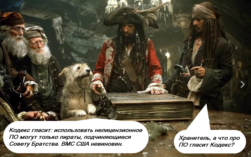 Пираты из ВМС США находятся "под обстрелом" за кражу интеллектуальной собственности на сотни миллионов долларов, включая программное обеспечение и идею высокоскоростной конструкции корпуса корабля. Моряки мужественно и с негодованием отметают эти гнусные инсинуации, заявляя, что уважают права интеллектуальной собственности как никто другой.