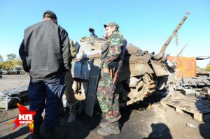 Со стороны это выглядит как профессиональная беседа автослесарей, этаких старых коллег по работе. Но «Крокодил» подсказывает: оба хлопца - пленные, и ещё месяц назад служили в бронетанковых бригадах Украины. Иван и Серёга - из центральной Украины. Они не выглядят замученными, спокойно общаются с журналистами, вот только родные села просят не называть: к их родителям уже приходили представители спецслужб, намекали, что пацаны, возможно, Родину предали. Да и других родственников полно, на которых идейные «великоукраинцы» отыграться могут. По этим же причинам отворачиваются при виде объективов.