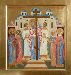 Прославляя Искупителя мира, мы особо чествуем сегодня сам Животворящий Крест Господень, которому дана необычайная и непостижимая спасительная сила. По умозрению древних Отцов, сотворённая Богом вселенная, образуя в полноте своей круг, в центре своём имеет крест, будучи распростёрта на четыре страны света. Так триединый Бог, предвидя ещё до сложения мира падение первозданного Адама и уже тогда предопределяя наше Искупление через будущую крестную Жертву Единородного Сына, в основание всего творения положил крест. Первый человек, соблазнившись лестью древнего змия, произвольно сошёл с богозаповеданного креста послушания, лишил мир его подлинной опоры, низвратил богоучреждённый порядок, открыл место тлению, разрушению и смерти. Ныне, когда упразднено древнее проклятие и открыт путь к воссозданию разрушенного грехом творения, крест снова стоит в центре мира. Его основание попирает адовы бездны, его верх достигает небес, во все концы мира изливается от него благословение и освящение. Словно бы наряду с видимым солнцем, которым живёт мир, даровано нам другое, невидимое солнце, Крест Господень, которым духовно движется бытие мира, предопределённого к спасению. Им держится вселенная, им утверждается все доброе и святое, им попирается и отгоняется все злобное и богопротивное, – и демонские полки устрашаются и бегут при виде крестного знамения. Крестной силой апостолы, мученики, подвижники христианские исцеляли болезни, отнимали силу у яда, укрощали диких зверей, обезоруживали врагов, отгоняли движение страстей; эта сила укрепляла, оживотворяла и возвеселяла их среди самых страшных мучений.