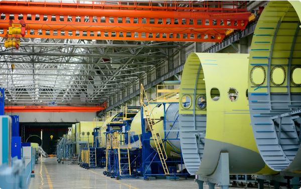 На заводе «КнААЗ им. Ю.А. Гагарина» изготавливаются отъемная часть крыла с механизацией и пилоном, центроплан и отсеки фюзеляжа.