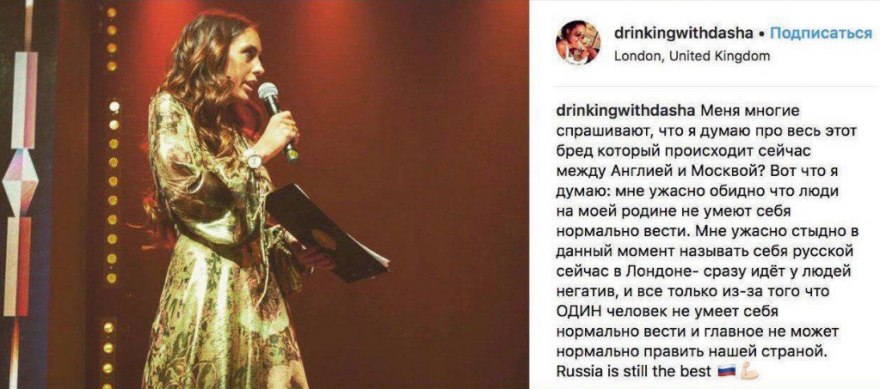 Даша, видимо, получив гневный звонок от папы, удалила пост. Что, впрочем, подтвердило, что она не русская, так как русские не сдаются.