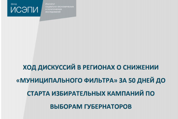 На фоне информации о появлении соответствующего законопроекта и возникшей ранее дискуссии на эту тему, Фонд ИСЭПИ представляет аналитическую записку «Ход дискуссий в регионах о снижении «муниципального фильтра» за 50 дней до старта избирательных кампаний по выборам губернаторов».По словам автора законопроекта, снизить муниципальный фильтр можно уже на выборах в сентябре текущего года.