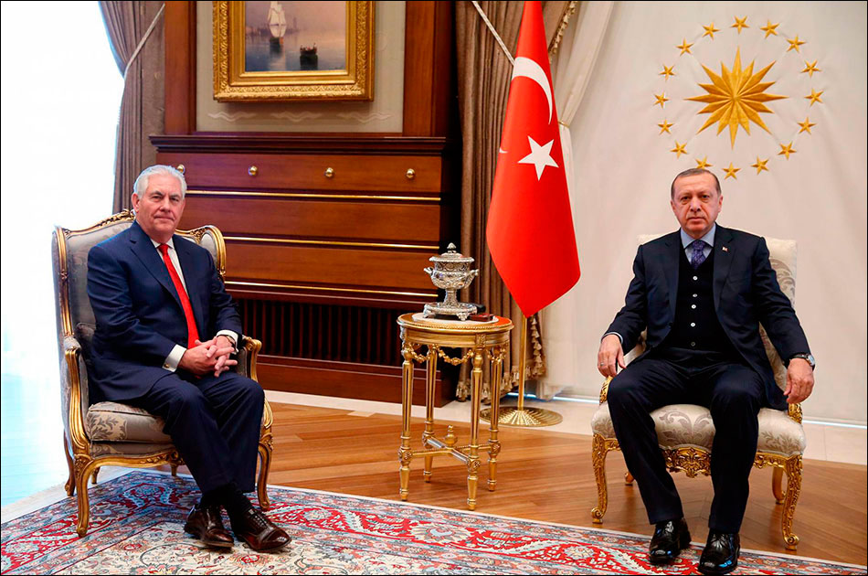 Кое-какие подробности встречи шефа Госдепа с турецким президентом были приоткрыты во время совместной пресс-конференции двух глав дипломатических ведомств. Судя по всему, задачей Тиллерсона было уговорить Эрдогана сбавить обороты и не выставлять американцев полными ничтожествами, с мнением которых на Ближнем Востоке больше не считаются. Но ему это явно не удалось — Турция напомнила о невыполненных договоренностях и выставила ряд условий, США признали вину и пообещали исправиться.