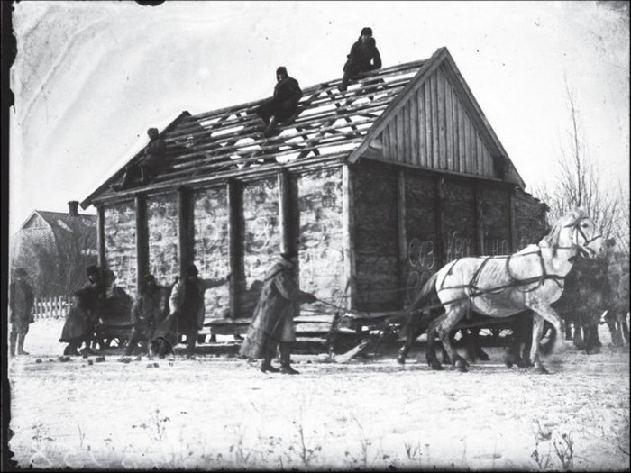 Члены общества по совместной обработке земли перевозят кладовую раскулаченного крестьянина к общей кладовой, Донецкая область, 1930-ые годы.