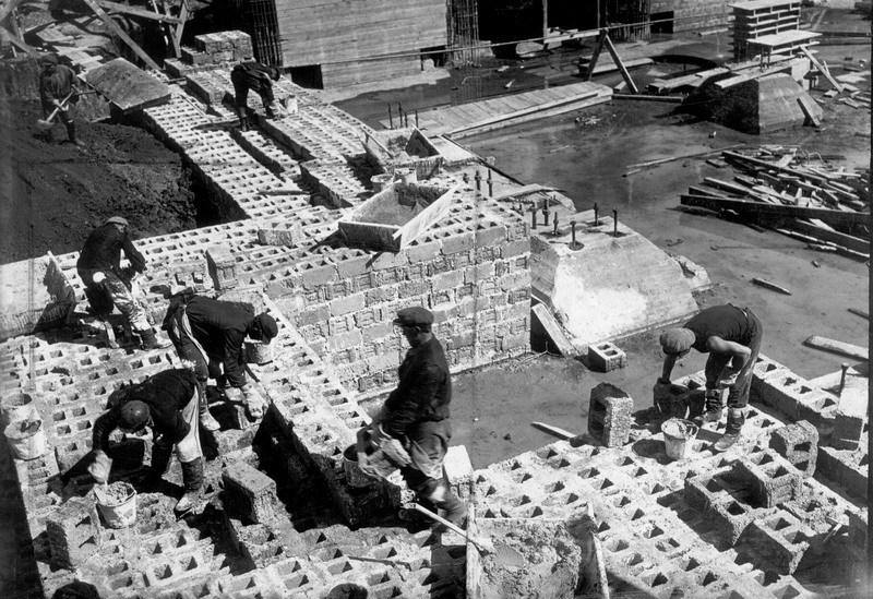 Строительство прокатного цеха металлургического комбината в Новокузнецке.1930-е.