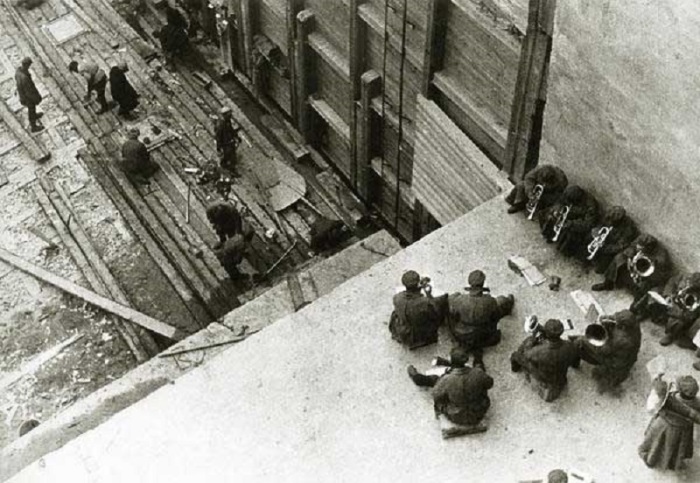 Работа под оркестр на строительстве Беломорканала. 1933 год.