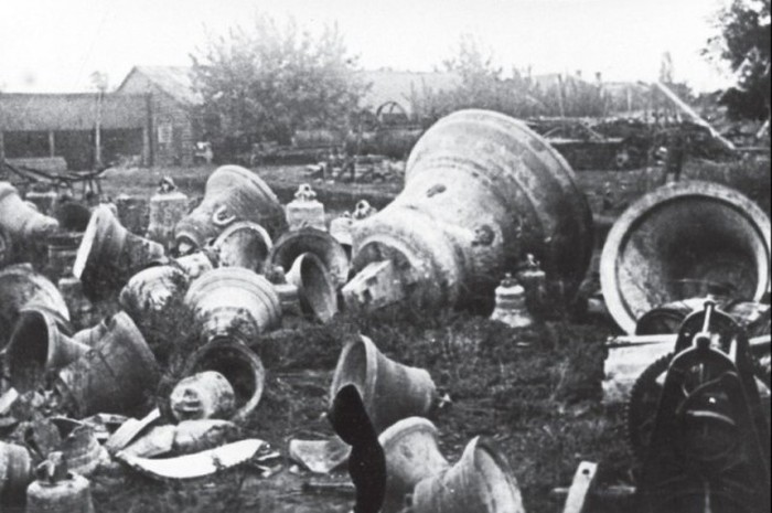 С большинства церквей были сняты колокола. Часть колоколов пошла на технические нужды крупных строек, например, Волховстроя и Днепростроя, а наиболее ценные экземпляры были проданы за границу. Так в США, в Гарвардском университете, оказались колокола Данилова монастыря.