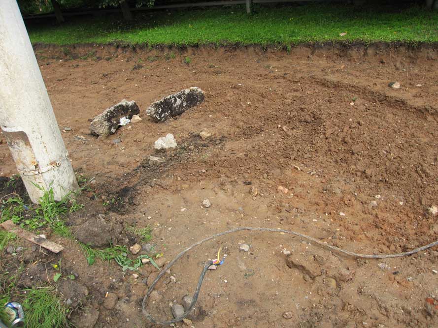 Для выполнения работ была привлечена подрядная организация – ООО «Дорбостсервис» (прораб – А.С. Ованян). Как выяснилось, строительная техника этой компании при отборе грунта зацепила кабельную линию и вырвала ее кусок наружу. В результате была повреждена линия уличного освещения на участке от водозабора до перекрёстка в районе скульптуры «Селята».