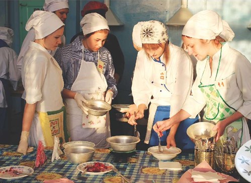 Вкусная традиция, когда кухня пре вращается в поле битвы, щедро приправленной по вкусу солью и перцем. Здесь не все средства хороши, а только те, что входят в технологию приготовления, и у плиты соединяются теория и практика поварского курса...Ещё не шеф-повара, но уже многое знают и умеют. Вторая группа против пятнадцатой. Второй курс против третьего. И для многих из них этот конкурс - первое профессиональное испытание. 12 конкурсантов - девять барышень и три молодых человека. Это лучшие из лучших в своих группах, которые уже прошли отборочные испытания и получили путёвку в полуфинал. По-другому назвать общеучилищный конкурс поваров нельзя, потому как победитель этого кулинарного поединка представляет родное ПУ «на области». А это уже совсем другая история, где на кухне встречаются сразу семь десятков поваров. Кстати, конкурсанты из семьдесят первого традиционно входят в десятку лучших!