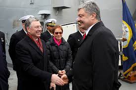 Спецпредставитель Госдепартамента США по Украине Курт Волкер пообещал президенту Петру Порошенко «всегда стоять рядом с Украиной и украинским народом на защите свободы и демократии». Об этом он сообщил во время встречи с украинским лидером на борту американского эсминца «Дональд Кук» в Одессе. За те полтора года, что Волкер отвечает за Украину, его посредническая миссия не приблизила установление мира в Донбассе, а сам спецпредставитель де-факто стал лоббистом Петра Порошенко, работающим на действующего президента как по вопросам Донбасса и отношений с Россией, так и по вопросам внутренней украинской политики.