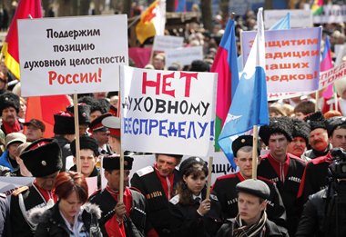 Говорят: «Казак без веры - не казак». Казаки исторически связаны с православием. И сегодня невозможно представить человека, который именует себя казаком, но открыто выступает против веры своих предков. Роль Русской Православной церкви в возрождении казачества трудно переоценить. 14 октября 2009 года на заседании Совета при Президенте РФ по делам казачества в Новочеркасске Святейший Патриарх Московский и всея Руси Кирилл обратился к казачеству: «На кого же Церкви опираться, как не на вас? Ваши отцы и деды кровью своей запечатлели верность Церкви и Отечеству. Вот и сегодня настало время, когда Церковь и казачье сообщество должны тесно взаимодействовать во благо народа нашего».