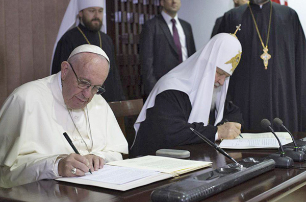 Встреча патриарха Кирилла с папой в 2016 году была связана, как заявлялось, с гонениями на христиан на Ближнем Востоке. Неужели теперь понадобится принимать папу-иезуита в Москве, чтобы обсуждать уже гонения на православных на Украине?