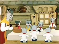 Жила-была коза с козлятами. Уходила коза в лес есть траву шелковую, пить воду студеную. Как только уйдет - козлятки запрут избушку и сами никуда не выходят. Воротится коза, постучится в дверь и запоет: - Козлятушки, ребятушки! Отопритеся, отворитеся! Ваша мать пришла - молока принесла; Бежит молоко ...