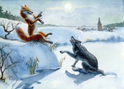 Жили себе дед да баба. Дед и говорит бабе: – Ты, баба, пеки пироги, а я запрягу сани, поеду за рыбой. Наловил дед рыбы полный воз. Едет домой и видит: лисичка свернулась калачиком, лежит на дороге. Дед слез с воза, подошел, а лисичка не ворохнется, лежит, как мертвая. – Вот славная ...