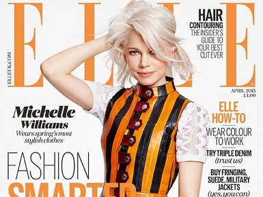 На обложке украинского Elle 34-летняя американская актриса Мишель Уильямс представляет платье из новой коллекции французского дома моды Louis Vuitton. Примечательно, что такой же была обложка апрельского выпуска британского выпуска Elle.