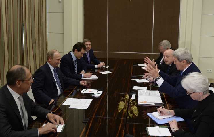 12 мая госсекретарь США Джон Керри встретился в Сочи с президентом РФ Владимиром Путиным и министром иностранных дел России Сергеем Лавровым.