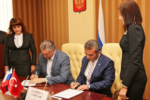 Меморандум о сотрудничестве между Советом министров РК и «Организацией промышленного сектора» турецкого города Кайсери подписали глава Республики Крым Сергей Аксенов и вице-президент ОПК Сулейман Сарпташ.