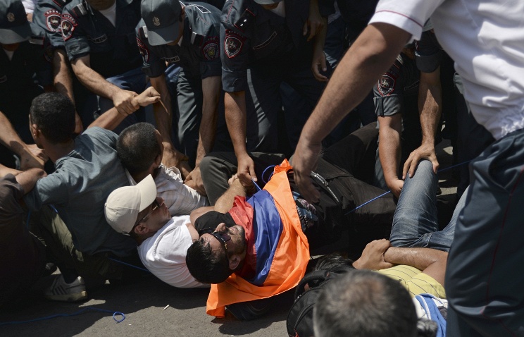 Активисты требуют наказать полицейских, применивших силу 6 июля на митинге в Ереване (09.07.2015)
