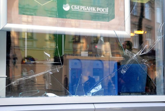 Три офиса Сбербанка России подверглись нападению во Львове (27.07.2015)