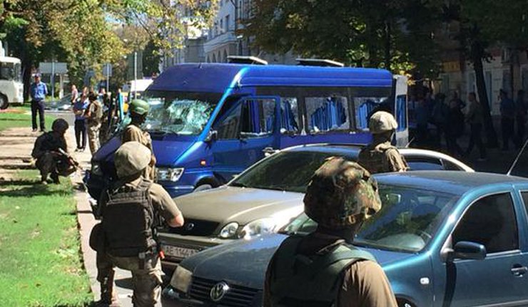 Несколько десятков боевиков в балаклавах, с пистолетами, кирпичами и битами пытались прорваться в здание, где находится штаб оппозиционной партии. Налетчики буквально разгромили автобус «Merсedes», который был припаркован рядом со зданием.