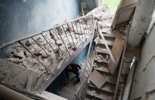 Снаряд киевских силовиков попал в многоэтажное здание в центре Донецка (06.08.2015)