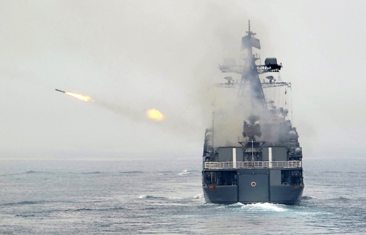 Корабли ВМФ РФ в Средиземном море провели учения с ракетными и артиллерийскими стрельбами (14.08.2015)