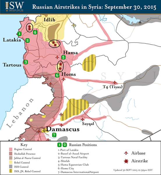 СМИ выложили карту авиаударов России в Сирии (01.10.2015)