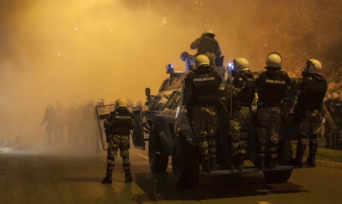 При разгоне оппозиции пострадали 39 человек. Антиправительственная демонстрация в черногорской столице Подгорице, анонсированная организаторами как «мирная и демократическая», завершилась поздно вечером в субботу попыткой штурма здания парламента, после чего полиция разогнала протестующих при помощи спецсредств. После шествия нескольких тысяч протестующих по улицам Подгорицы и митинга в парке напротив здания парламента республики, часть демонстрантов двинулись к кордону полиции, охранявшему парламент. Когда толпа подошла к оцеплению вплотную, депутаты от оппозиционного «Демократического фронта», организовавшего акцию, заявили о намерении пройти в здание. Спикер парламента Ранко Кривокапич согласился встретиться с депутатами, но в парламент хотели попасть все присутствующие. В полицию, препятствующую попыткам прорвать ограждение, полетели камни, петарды, файеры и баллоны со слезоточивым газом. Стражи порядка ответили спецсредствами — шумовыми гранатами и слезоточивым газом. Протестующие разбежались, во время отступления круша и разворовывая витрины магазинов и ювелирных лавок.Спустя некоторое время полиция задержала (по некоторым данным, в столичном ресторане «Кристалл») одного из лидеров «Демократического фронта» Андрею Мандича, накануне призывавшего сторонников «довести на сей раз дело до конца».