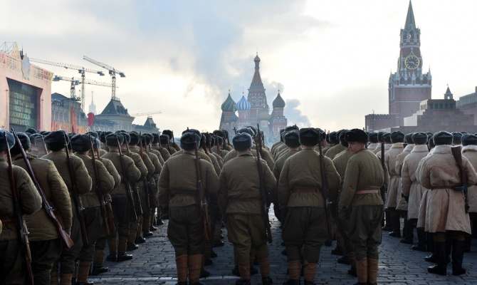 Военный парад на Красной площади прошел 7 ноября 1941 года во время Битвы за Москву, когда линия фронта находилась со столицей. Шествие было приурочено к 24-й годовщине Октябрьской революции. День проведения парада в России является Днем воинской славы.