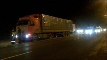 Дальнобойщики в четверг продолжили акции протеста по всей стране. В Петербурге на трассе, где дальнобойщики проводили акцию "Улитка", дежурили порядка 40 полицейских машин.