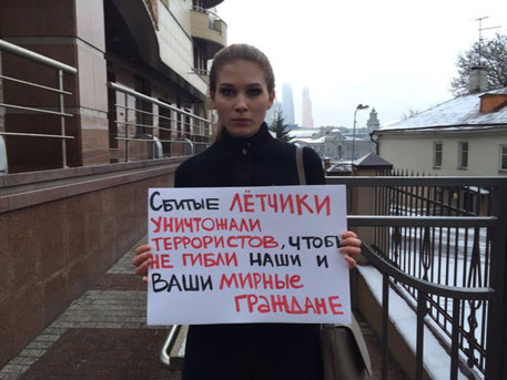 Немногочисленная акция протеста в связи с атакой турецких ВВС на российский самолет Су-24 в Сирии проходит во вторник вечером у посольства Турции в Москве.