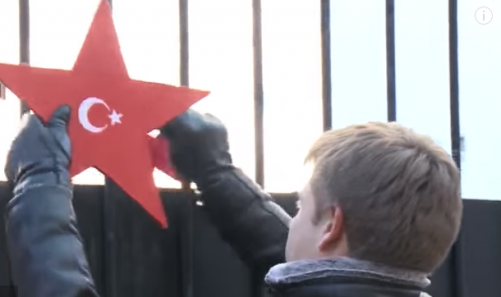 Депутаты Верховной рады Юлий Мамчур и Алексей Гончаренко устроили символическую церемонию у посольства Турции в Киеве. Один из народных избранников прикрепил к ограде посольства самодельную медаль с полумесяцем. Во время церемонии оркестр сыграл знаменитую мелодию «Смуглянки» – песни, известной советскому зрителю по фильму «В бой идут одни старики». Эта кинокартина рассказывает о летчиках-истребителях времен Великой Отечественной войны.