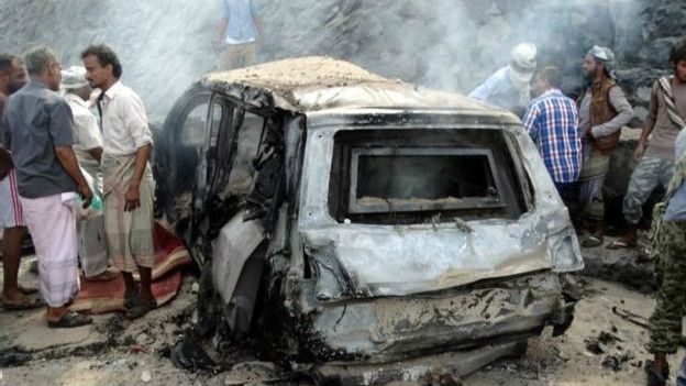В Йемене продолжается вооруженный конфликт, где с одной стороны выступают повстанцы-хуситы из шиитского движения "Ансар Алла" и лояльная экс-президенту Али Абдалле Салеху часть армии, а с другой — войска изгнанного ими президента Абд Раббу Мансура Хади, которых на земле и с воздуха поддерживают силы арабской коалиции во главе с Саудовской Аравией. Авиация коалиции с 26 марта наносит авиаудары в районах, контролируемых повстанцами. - - - Генерал Джафар Саад и шесть его охранников стали жертвами взрыва утром в воскресенье. Губернатор направлялся на работу. Источники в службах безопасности Йемена сообщили, что по машине генерала был произведен выстрел из гранатомета. Ответственность за покушение взяло на себя руководство запрещенной в России и ряде стран джихадистской группировки "Исламское государство". Местные источники сообщают, что покушение могли совершить как повстанцы-хуситы, которые захватили большую часть Йемена, так и местное отделение "Аль-Каиды". Как сообщили службы безопасности, в машину губернатора выстрелили из гранатомета В субботу в Йемене были убиты известный в стране судья, который вел дела по статьям о терроризме, и два его сына. В ходе еще одного нападения погиб сотрудник военной разведки. Президент Йемена Абд-Раббу Мансур Хади, вернувшийся в страну из изгнания в ноябре, объявил Аден временной столицей страны после того, как войска коалиции отбили город у повстанцев-хуситов, поддерживаемых Ираном. Генерал Джафар Саад был назначен губернатором Адена в ноябре после того, как под его командованием город взят под контроль правительственных сил. Повстанцы в ЙеменеImage copyrightReuters Image caption Повстанцы-хуситы, поддерживаемые Ираном, захватили большую часть Йемена По сведениям ООН, с марта, когда коалиция под руководством Саудовской Аравии начала военную кампанию в поддержку президента Хади, в результате боев и воздушных налетов в Йемене погибло более 5700 человек. ООН надеется организовать до нового года переговоры между правительством страны и повстанцами-хуситами, поддерживающими бывшего президента Али Абдуллу Салеха.