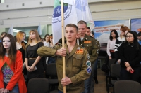 В фойе перед актовым залом расположились стенды с информацией о различных студотрядах. Наличие атрибутики и то и дело раздававшиеся речевки напоминали, скорее, об атмосфере на футбольном матче. Впрочем, как только в зал зашел временно исполняющий обязанности главы Коми Сергей Гапликов, стало заметно тише.