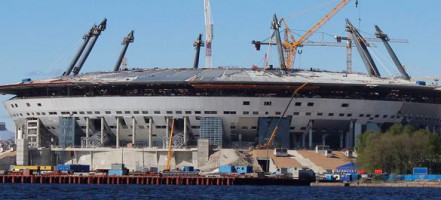 В Комитете по строительству Санкт-Петербурга утверждают, что строительные работы на «Зенит-арене» выполнены на 81,7%, реконструкция павильонов завершена 95%, и уже начаты работы по благоустройству прилегающей территории (выполнены на 29,2%), подсветке и освещению стадиона (сделано 36,9%). Тем временем в одном из секторов стадиона Ростехнадзор уже обнаружил трещины, а в конструкции были выявлены протечки.