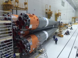 На космодроме «Восточный» специалисты ФГУП «ЦЭНКИ» и РКЦ «Прогресс» в рамках проведения комплексных испытаний технологического оборудования завершили цикл механической сборки пакета ракеты-носителя (РН) «Союз-2.1а». В состав пакета входят две ступени ракеты, а это шесть блоков: два центральных и четыре боковых.