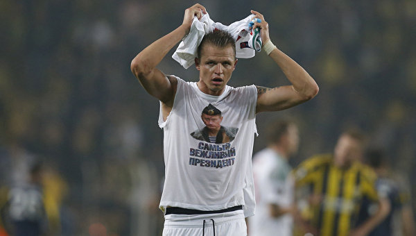 Футбольный клуб "Локомотив" счел недопустимым поступок полузащитника Дмитрия Тарасова, который после матча с турецким "Фенербахче" продемонстрировал майку с изображением Владимира Путина. Соответствующее заявление опубликовано на сайте клуба.