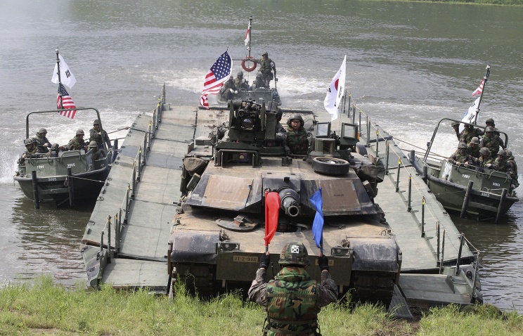 "В данном этапе были задействованы около 130 военнослужащих инженерных войск, подразделений химической защиты и ПВО, а также 60 единиц спецтехники, 20 единиц боевой бронетехники, а также зенитных установок", - отметило Минобороны. Целью учений была отработка совместных действий по форсированию водных преград. Тренировка является частью масштабных маневров Foal Eagle, проходящих с 7 марта по 30 апреля.