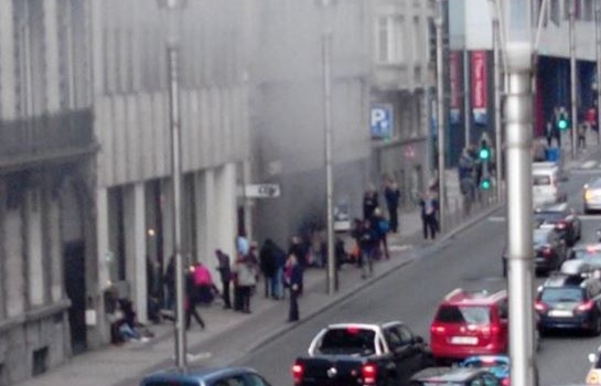 В социальной сети Twitter люди выкладывают фотографии дымящегося метро с надписями: "Взрыв в Маэльбек у евроквартала".